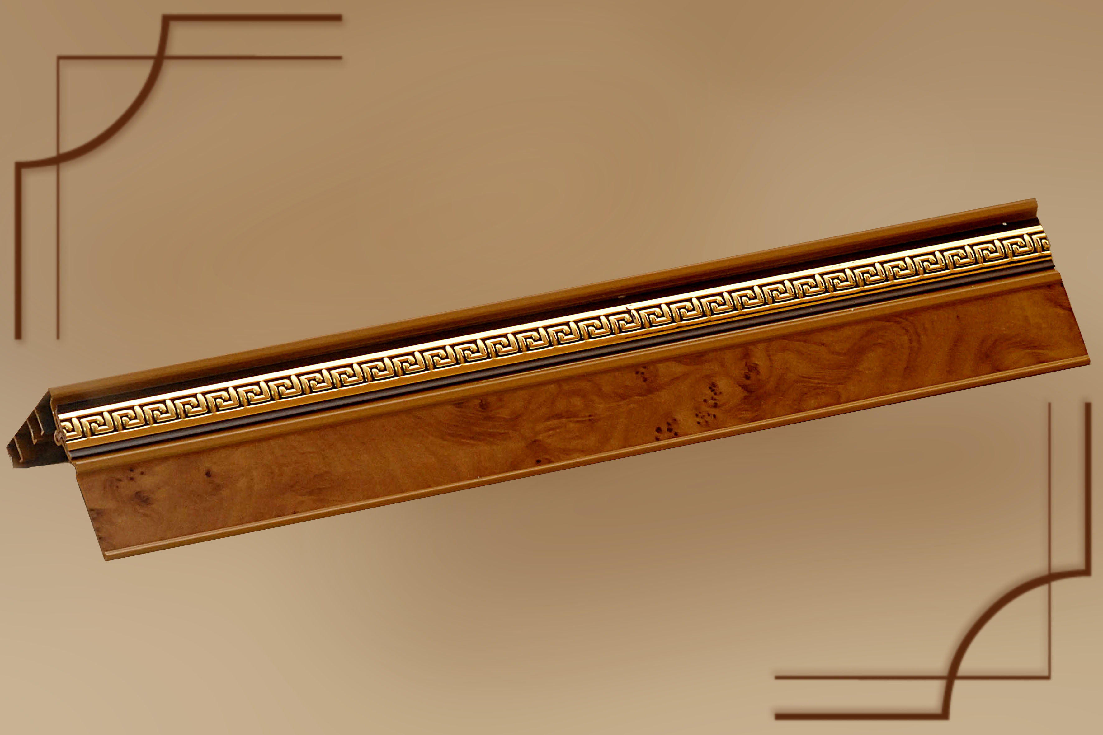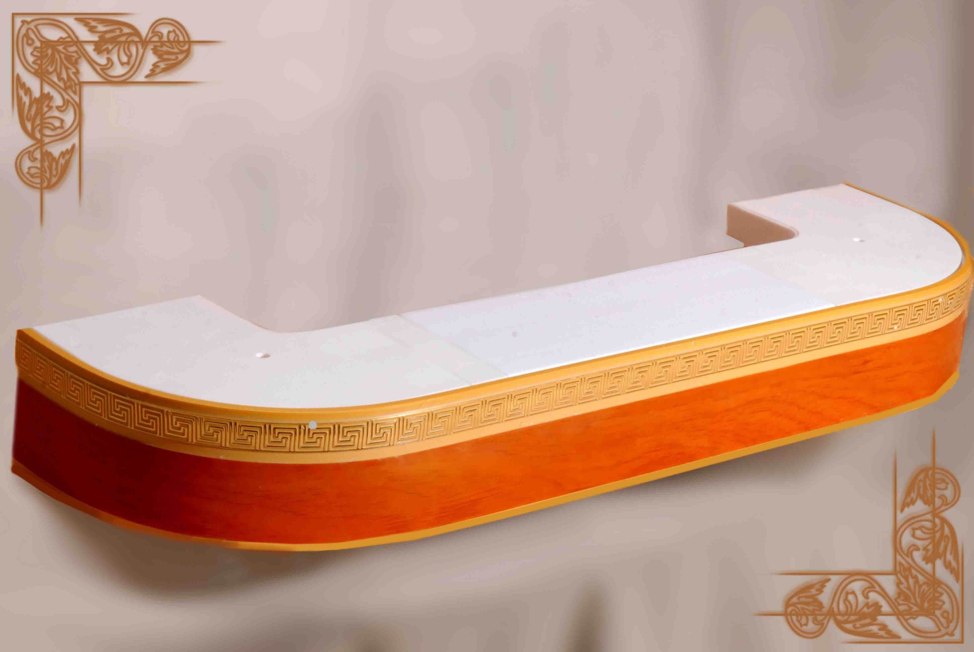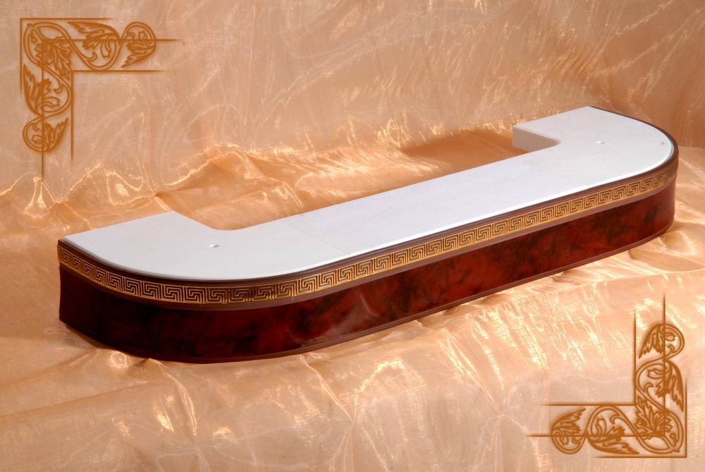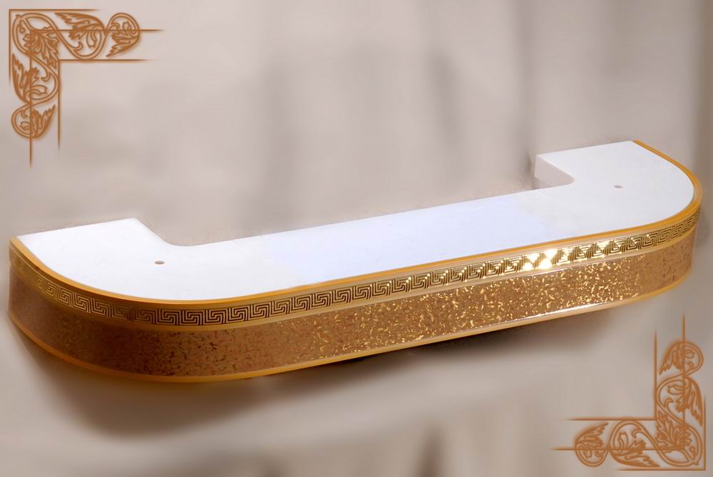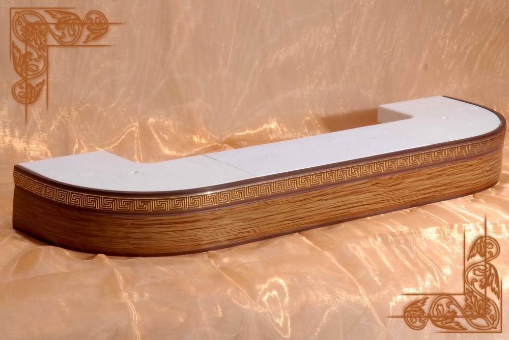 2.Карниз Галант 2х и 3х полозные с поворотом и декоративной планкой(цвета:золотой бук,песок,корейская береза,орех,махагон,золото белое,черешня)
