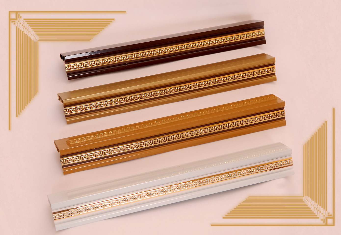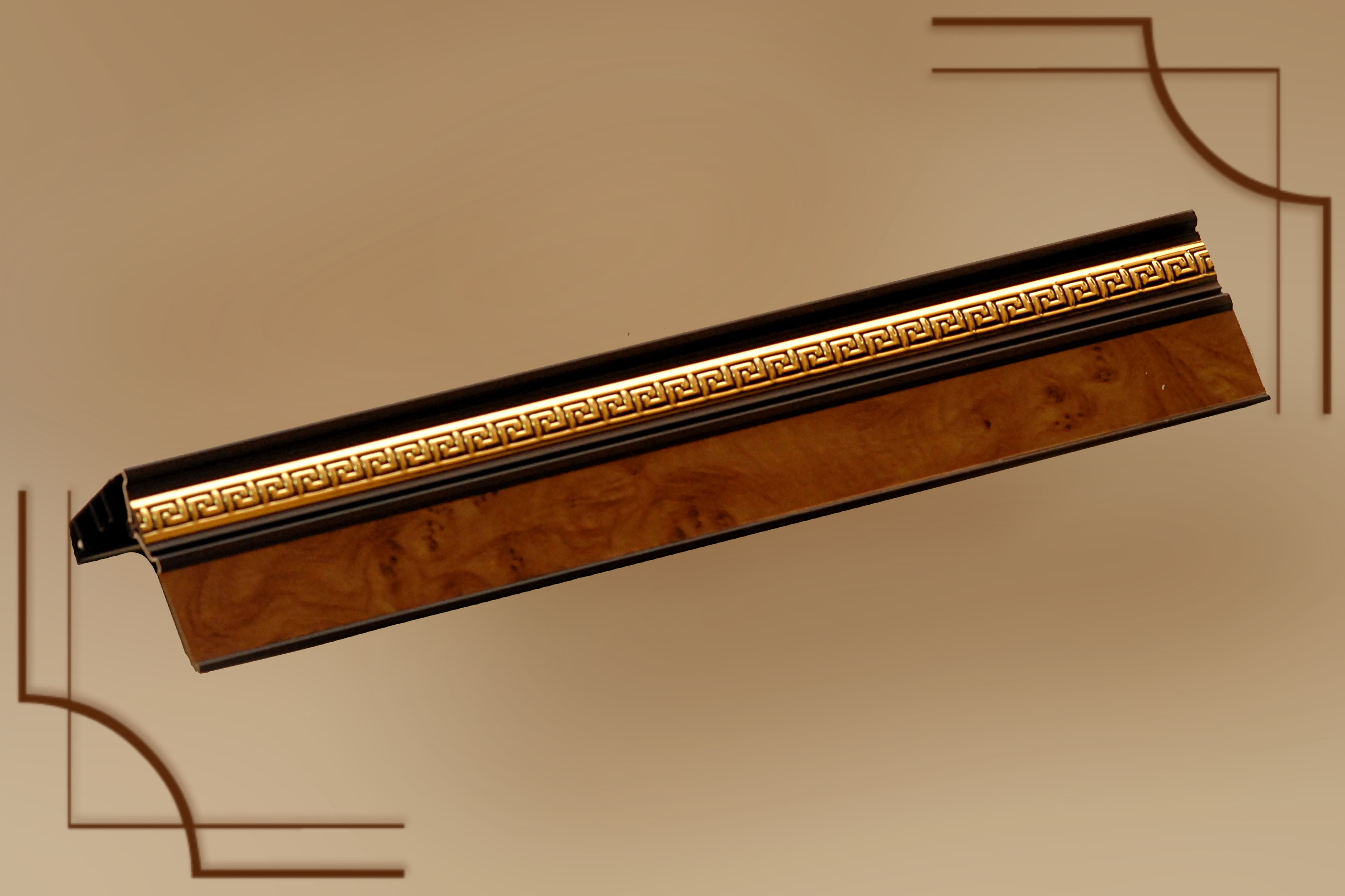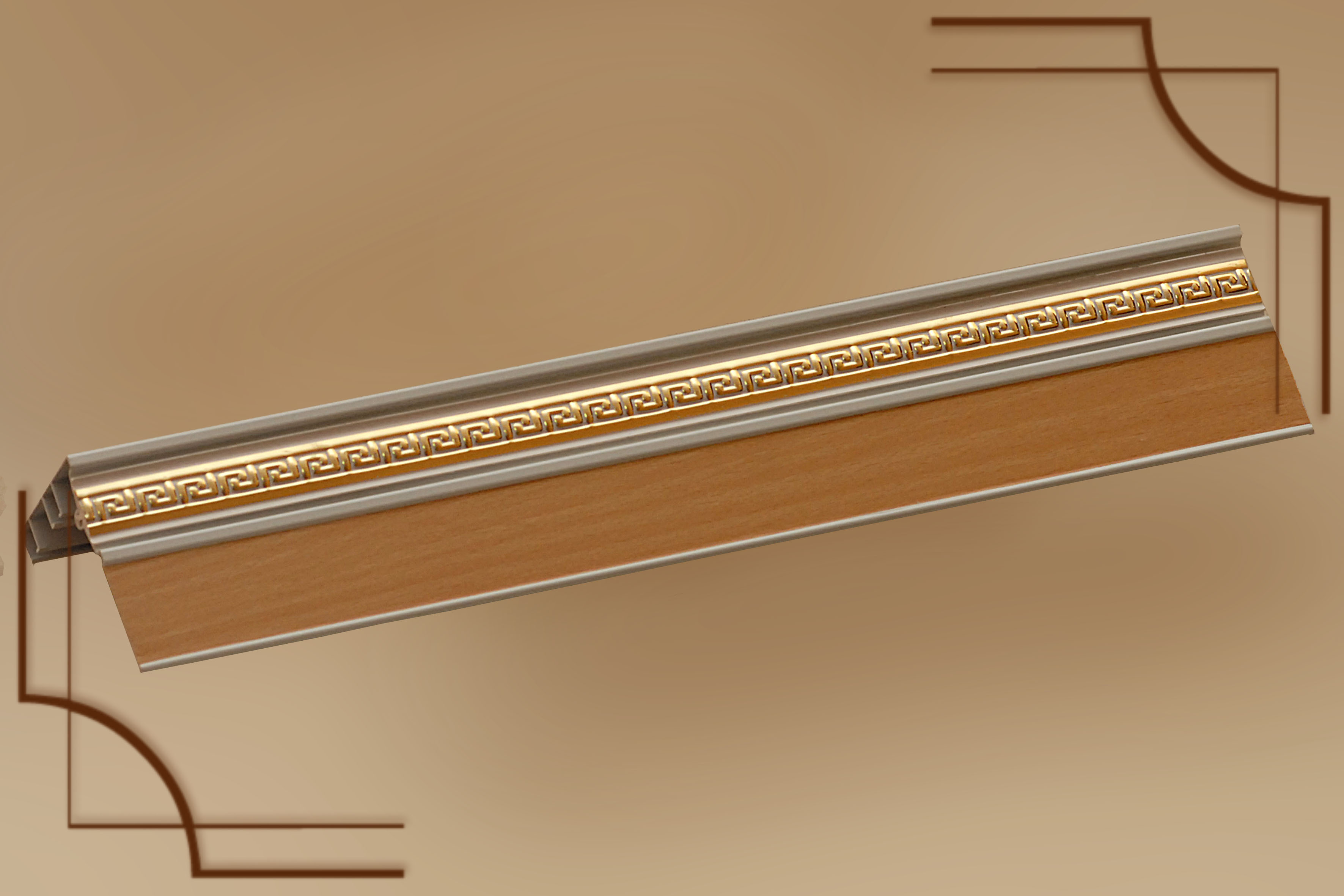 2.Карниз Галант 2х и 3х полозные с поворотом и декоративной планкой(цвета:золотой бук,песок,корейская береза,орех,махагон,золото белое,черешня)